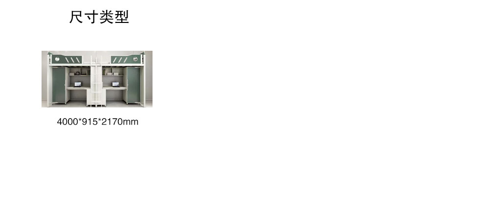 二連3人位公寓床1.整體規格:L4110*W900*H2120mm/2900mm,;2.邊立柱:采用(V65閉口型材),料厚1.2mm的閉口型管材,立面8個。立柱上下兩端口安裝工程塑料靜音內塞,上端內塞...